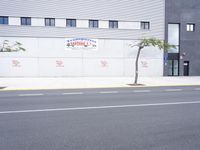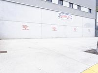 An industrial warehouse with a concrete facade and a garage door in Spain, Europe.