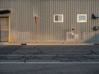 A clear sky profiles the dawn over a dirt surface in Salt Lake City, Utah, USA. An industrial storage depot with a gravel area and hard shadows is seen in the foreground.