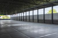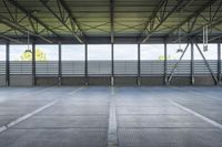 An industrial building in Toronto, Ontario, Canada with a concrete parking deck and metal roofing, providing ample space for transport and parking. The straight road leading to the building showcases the city's urban architecture and real estate profile on a sunny day.