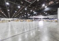 A shot of the concrete flooring of a factory, warehouse, hangar, or other industrial building in Detroit, USA, illuminated by artificial light.