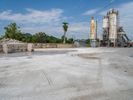 A view of an industrial manufacturing factory on a gravel surface with asphalt surrounding it. The factory stands tall under the cloudy sky on a sunny day. The dirt area nearby adds a rugged feel to the industrial setting.