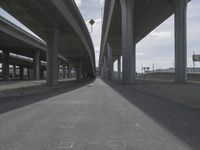A view of the city of Los Angeles, California in the USA at dawn, with the roads, asphalt, concrete, bridge, and underpass providing an abstract view of the city's infrastructure, complete with hard shadows and visible shadow from the cloud cover.