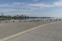 The city of Milwaukee, WI, USA is seen from the lakefront, with its skyline, skyscrapers, bridges, highways, boardwalk, and other infrastructure of the metropolitan area visible against the horizon.