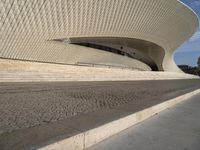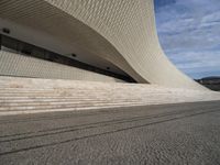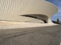 A sunny day in Lisbon, Portugal reveals a beautiful combination of modern architecture, cobble stone roads, and vibrant vegetation against a clear blue sky.