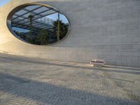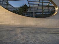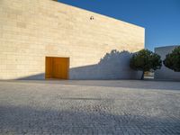 The break of day in Lisbon, Portugal reveals a city of art and architecture, with its modern buildings, grey brickwork, cobblestone roads, and vast ocean horizon. The sunlight casts hard shadows, creating an atmosphere of calm against the azure sky and lush vegetation.