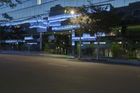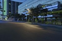 A snapshot of the metropolitan area of Los Angeles, California, USA with its modern architecture and mixed-use buildings, glass walls, road surface, street lights, neon lights, public spaces, headquarters, and residential areas illuminated in the evening light.