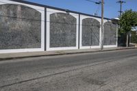A view of a classic architecture office building in Los Angeles, California, USA. The building's facade showcases a beautiful blend of concrete and glass, while the surrounding road and tree-lined street add to the suburban charm. This image captures the essence of urban design in the bustling city, with clear skies overhead and the vibrancy of city life in the art district.