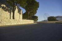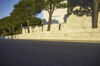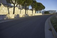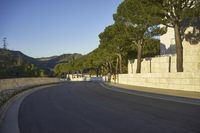 Scenic view of a road with asphalt surface in Los Angeles, California, USA, during the day with clear sky and tree-lined rural area