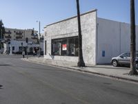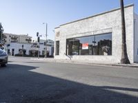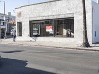 A view of the urban landscape in Los Angeles, California, USA, showcasing the classic architecture, brick walls, and glass storefronts of the art district.