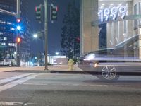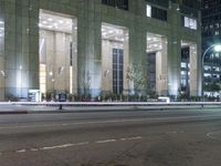 A view of the city of Los Angeles, California, USA at night, showcasing the modern architecture, high-rise buildings, and urban design.