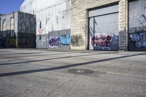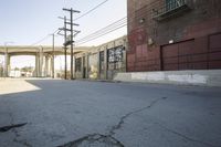 A sunny day in Los Angeles, California, USA. The photo features a beautiful cityscape with residential areas, bridges, and architectural structures. The sunlight highlights the brick walls and road surfaces, creating a warm winter scene in this urban setting.