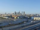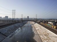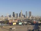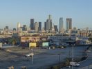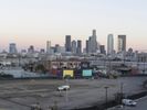 A stunning view of Los Angeles at dawn, showcasing the city's iconic concrete bridges and high-rise buildings. The tranquil winter morning reflects the metropolis's urban charm. The city's train stations and transport links provide convenient access to the bustling suburban areas.