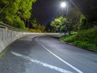 A cityscape of Los Angeles, USA, illuminated by artificial light at night, with a one quarter view of an asphalt road winding through the urban design.