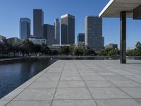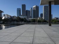A panoramic view of the Los Angeles skyline showcasing the modern architecture and skyscrapers in the bustling city of California, USA.