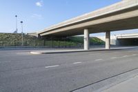 A view of a street in Los Angeles, California, USA. The image showcases the city's architecture, asphalt road, and concrete bridge, with an underpass and a tunnel. The sun casts shadows on the road and the subway, creating a play of light and dark. The clear sky and sunny weather make the sun visible, adding to the vibrant atmosphere. The road surface, parking lot, and walkway provide easy access for transport in this urban infrastructure. The image captures the city's profile and public spaces, with a skyway and curb visible in the background.