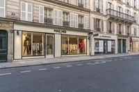 The classic architecture of Paris, France, Europe, is on full display in this mixed-use neighborhood. The break of day reveals a road paved with asphalt and lined with store fronts, as city life takes form in the urban design of this bustling town.