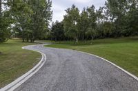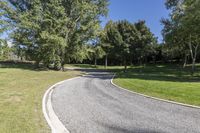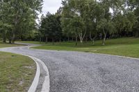 A scenic road surrounded by forest, grass, and woody plants in New Zealand's South Island.