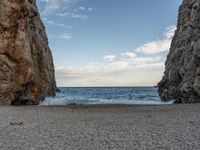 In the stunning landscapes of Majorca, part of the Balearic Islands in Spain, rugged rock walls frame the coastal areas. The open spaces offer serene views of the ocean, with gravel and dirt surfaces adding to the natural beauty. Clouds drift lazily over the picturesque canyons and beaches, creating a tranquil atmosphere. The walls of the island stand as a testament to its geological profile, blending seamlessly with the coastal scenery of this European gem.