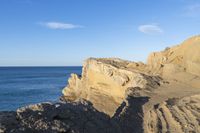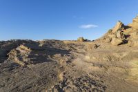 A breathtaking view of a mountain range with clear blue sky and fluffy white clouds.