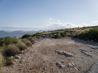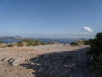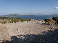 A stunning view of Mallorca in the Balearic Islands, Spain. The clear sky, open landscape, ocean shore, and gravel surface create a beautiful natural landscape of Europe.