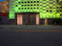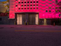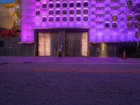 The break of day reveals the vibrant and modern architecture of Miami's art district illuminated by artificial light and neon signs, a typical view of city life in Miami Beach, Florida, USA.