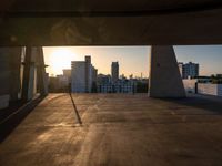 A sunny morning in the city of Miami Beach, Florida USA, with the hard shadows of a parking deck cast across the asphalt surface of the urban cityscape.