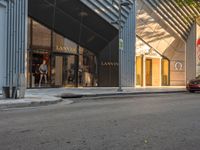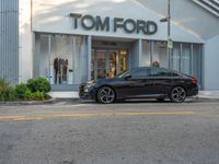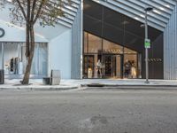 A profile view of a modern road in Miami Beach, Florida, USA. Shopping stores with urban design line the asphalt in this bustling city life.