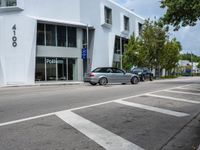 City life in Miami, Florida, USA. A store front in the urban design of Miami Beach on a sunny day with clouds in the sky.