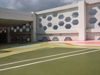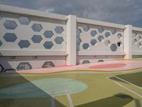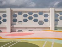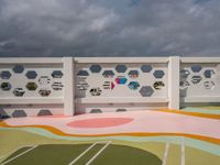 A profile of Miami Beach, Florida, USA, a city known for its vibrant art district, on a gloomy day with a grey sky, asphalt parking lot, and other urban features.