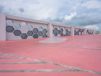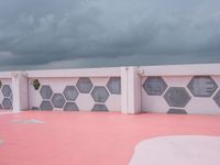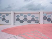 A straight, asphalt road stretches down the city of Miami Beach, Florida, USA, creating a profile of the urban design in an art district. The grey sky over the parking lot creates a gloomy yet alluring atmosphere of the city life.