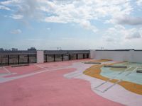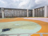 An urban design of a parking lot in Miami Beach, Florida, USA on a gloomy day, with asphalt surfaces and open space for city life.