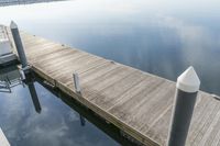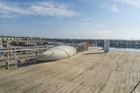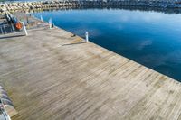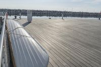 A fixed link concrete bridge on the Milwaukee waterfront in Wisconsin on a clear winter day, with a view of the lake, shoreline, and recreational infrastructure in the background.