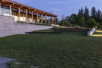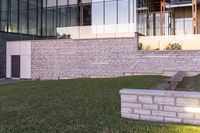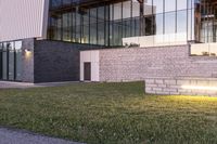 A stunning view of modern architecture in Toronto during the early morning hours. The cityscape showcases the beautiful combination of residential buildings, commercial properties, and lush green lawns.