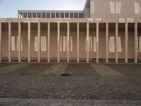 A cobble stone road winds its way through the modern architecture of Berlin, offering a clear view of the city's urban design on a bright day in Europe.