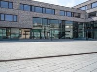 A black-and-white profile of a high-rise building in Bremen, Germany, surrounded by a public plaza and open spaces. The building is constructed of composite materials, brick, wood, asphalt, pavers, and fixtures on a road surface. The facade is a symmetrical rectangle with windows and a modern style of architecture.