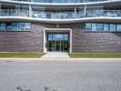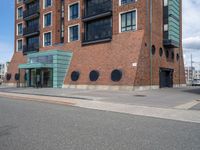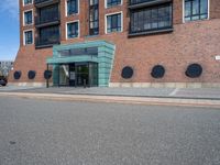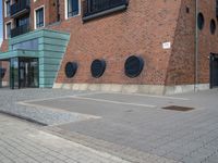 A residential building in Bremen, Germany, with a modern facade of brickwork, wood, and asphalt flooring. The road surface and parking lot lead up to the entrance of the property, blending with the urban design of the neighborhood.