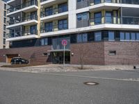 A high-rise building in Bremen, Germany, featuring a modern architecture with a composite material facade, asphalt driveway, brick wall, concrete curb, and a garage door. Automotive exteriors, public spaces, and urban designs fill the streets of this vibrant European city.