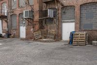 A view of a modern building with brickwork and large windows in a bustling city, showcasing urban design and architecture.
