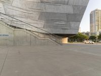 A view of a modern cityscape in Dallas, Texas, featuring a concrete bridge, beige buildings, a concrete street, and other urban infrastructure elements. The skyline of the metropolitan area is visible in the distance.