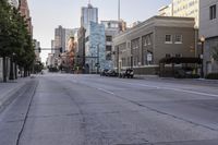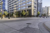 A view of the stunning modern architecture in downtown Denver, Colorado, USA, with skyscrapers, office buildings, and residential areas. The city skyline is framed by a clear blue sky, and the streets are lined with trees and streetlights. The bustling metropolitan area offers a mix of transportation options, including bicycles and automobiles. The vibrant city life and urban atmosphere make Denver a popular travel destination.