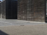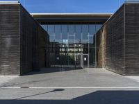 A view of a modern architectural building in Germany, with an open space and trees surrounding the area
