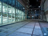 A cityscape of the metropolitan area of Holland at night, featuring a modern office building with a facade made of composite material, metal, wood, concrete, glass, and a variety of other materials. Symmetry and urban design are evident in the alley-way, with artificial light fixtures and windows that reflect the chair, small road, and high-rise condominiums of this bustling European city.