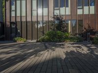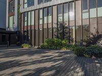 A stunning example of modern architecture in a bustling city, showcasing a sleek building with unique facade and large windows, surrounded by open spaces and lush vegetation.