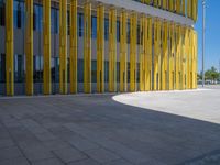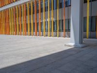 This photo showcases a modern architecture in Zaragoza, Spain. The city's business district is highlighted with multicolored office buildings and pavers on the surface. The clear sky provides a perfect backdrop for the urban scene, while the hard shadows create a striking effect. Explore the vibrant and dynamic profile of Zaragoza with its stunning architecture and bustling business atmosphere.