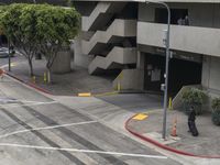 A high-rise office building with modern architecture in downtown Los Angeles, California, USA.
