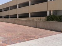 A view of a modern architecture building in Los Angeles, California, USA, surrounded by a residential area with a parking garage and lush vegetation.