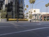 A view of the cityscape and modern architecture in Los Angeles, California, USA with a clear sky