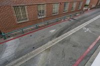 A view of the modern architecture of Los Angeles, California, USA. It features a composite material of wood, asphalt, brick, tar and public space, such as a parking lot, parking garage, Hinterhof, brick wall, street light, tree, window and many more fixtures. The city has a high-floor elevated parking deck and a zebra crossing that is parallel to a residential area in a neighborhood. The day view presents a range of tints and shades of grey, brown and beige that adds to the urban design of the infrastructure.