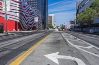 The city of Los Angeles, California, USA is a bustling business district with its unique mix of modern and futuristic architecture, as seen from a profile view of the city with a clear sky and open skyline, and the roads paved with asphalt. Contrails in the sky add a unique touch to the scene.