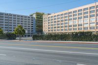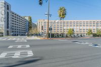 A view of the modern architecture and city life in Los Angeles, California, USA, with straight roads and clear skies